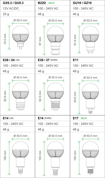E27 - Warm White, 180º, 7 Watt, 355 lm (Replaces 40W Incandescent) ![]()