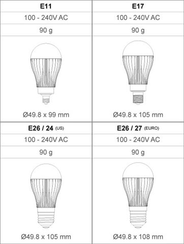 E27 - Warm White, 180º, 7 Watt, 355 lm (Replaces 40W Incandescent) ![]()