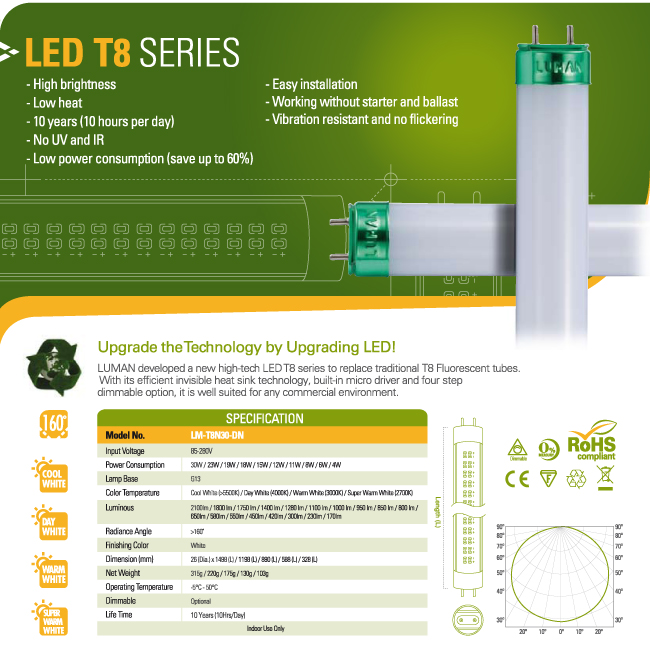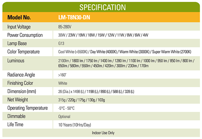 - Exactly same size as normal fluorescent T8 tube
